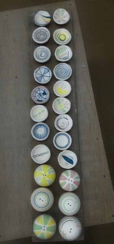 すでに素焼きが終わった器たちは、このぐらい(↓)ありましたが、教室で絵付けをするとあっという間に時間が過ぎてしまうので、持ち帰って作業することにしました。