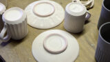 こちらは、黄化粧土と空化粧土の2色使いです。一応、ソーサーも合わせています。