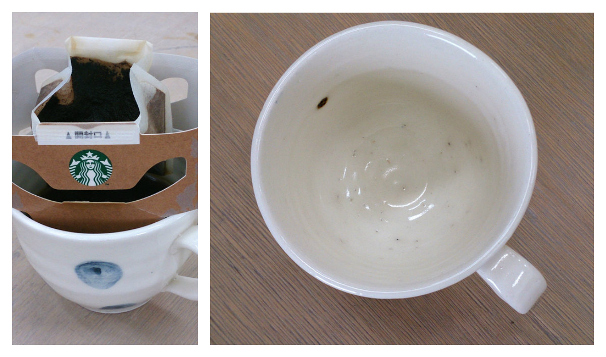 スタバのドリップコーヒーはちょっぴり高いので、自分にとっては贅沢なコーヒータイムです。ヘタでも何でも、自分で作ったカップでコーヒーを飲むのはいいもんです。気を取り直してがんばろう♪