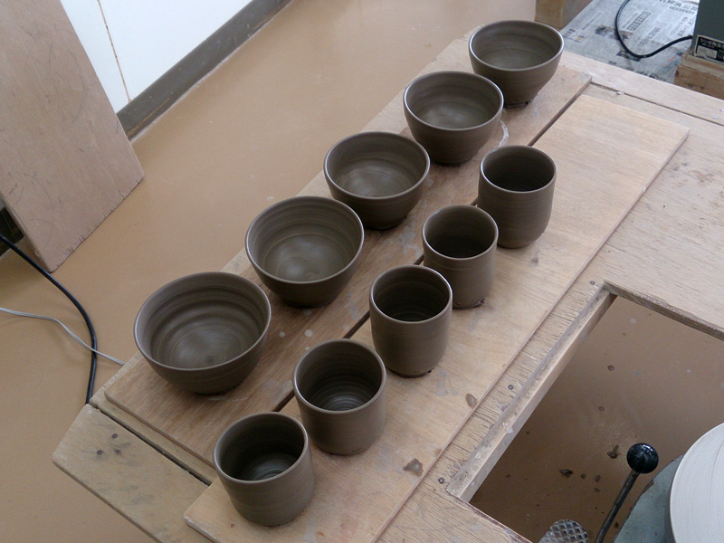 落款を押して、乾燥棚に乗せておきます。お茶碗は好みが色々ありますね。なかなか軽い仕上がりになりました。