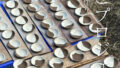 今はゴールデンラーチトレイルの副賞として提供するマグと勤労感謝祭の協賛カップの制作を並行しています。どちらも私が一番好きな技法の「粉引き」にしようと思っていますが、化粧土の濃淡で素地が見え隠れする柔らかい風合いが人気です。
